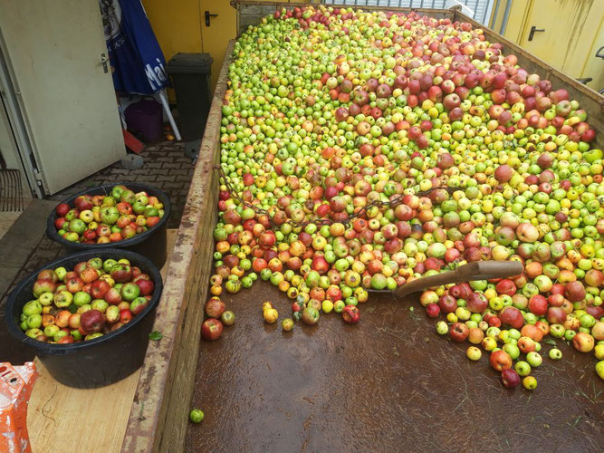 Insgesamt sind in 2020 etwa 30.000 kg Äpfel, Birnen & Quitten gekeltert worden.